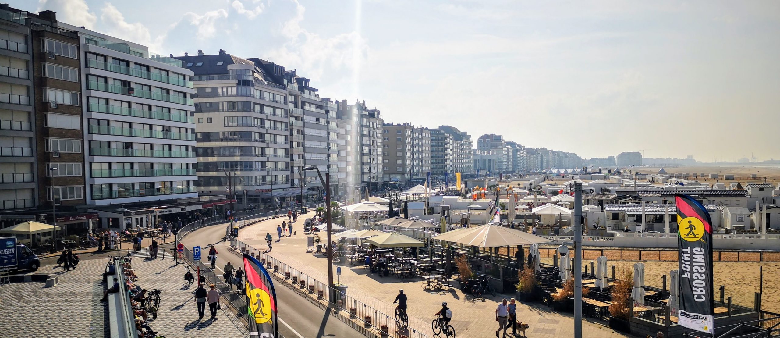 Посмотрев первые старты мужчин и женщин, во вторник мы решили устроить себе экскурсию: посмотреть Брюгге, а заодно финишный городок. И так как большинство дорог перекрыто для проезда — решили съездить на местной электричке. Тем более что вокзал всего в 500 метрах от кемпинга. Купили билеты в автомате на вокзале по 10 евро туда-обратно в первый класс. Путешествовать на поезде — так уж со всем комфортом. Поезда идут каждый час, в основном до аэропорта Брюсселя, а значит Брюгге проезжают. Все вагоны двухэтажные, комфортные, с туалетами, мягкими креслами, местами для велосипедов на первом этаже. Отличие — в первом классе все сиденья установлены попарно лицом к друг другу, с маленьким столиком между ними.…